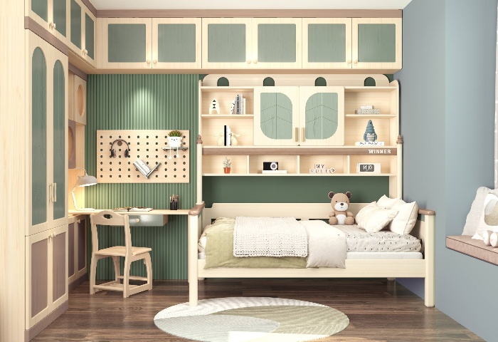 床的位置要合理,避免靠近窗戶和門,以免受到外界的干擾。可以選擇帶有床頭燈和床頭柜的床,方便孩子在睡前閱讀和存放物品。
