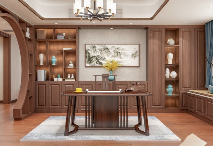 傳統(tǒng)藝術(shù)畫作:中國畫、書法作品等傳統(tǒng)藝術(shù)形式成為新中式裝修的重要裝飾元素。一幅意境深遠(yuǎn)的山水畫卷掛在客廳或書房的墻面,不僅能提升空間的文化內(nèi)涵,還能為居住者帶來心靈的寧靜。書法作品則可以通過裝裱后掛在走廊、臥室等空間,展現(xiàn)出主人的文化品味。
