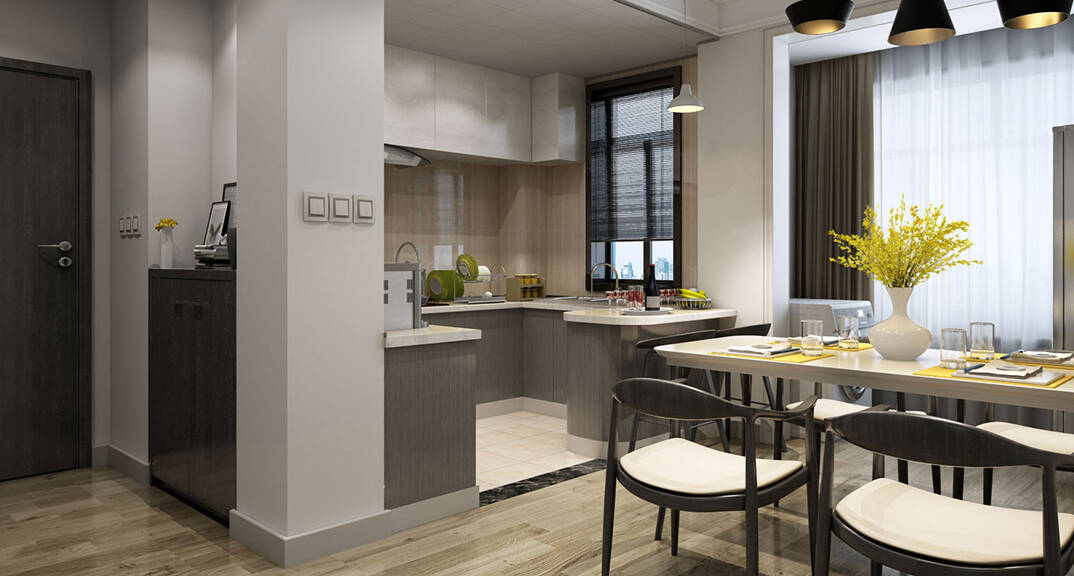 將自然的元素融入室內(nèi),以淺雅的灰及大地色系為背景,中性色的大范圍鋪展將采集于自然樹木本身的綠色系映襯的更加鮮明。