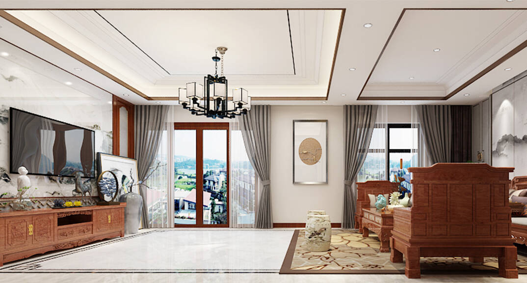 龍湖九里香醍 350㎡ 別墅 新中式風(fēng)格客廳裝修效果圖