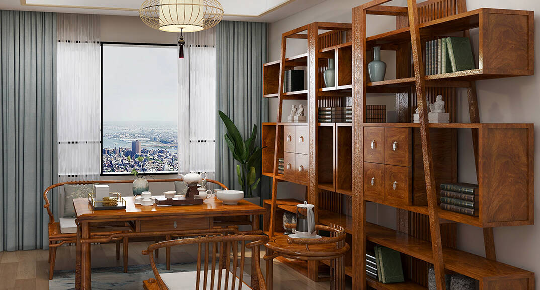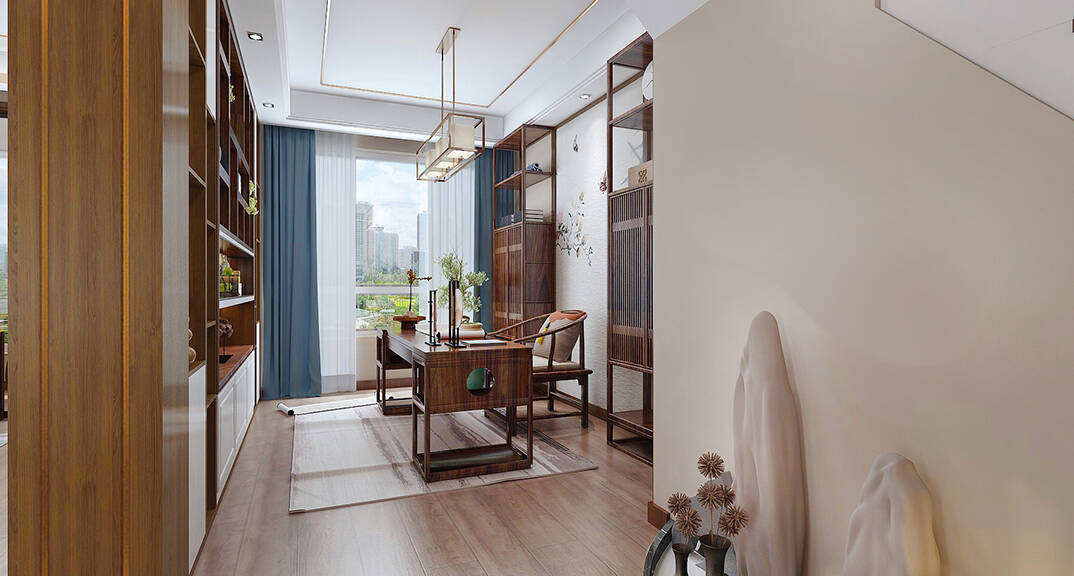 直線裝飾在空間中的使用,不僅反映出現(xiàn)代人追求簡單生活的居住要求,更迎合了中式家具追求內斂、質樸的設計風格,使"新中式"更加實用、更富現(xiàn)代感。