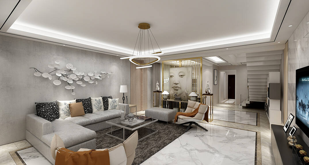 王哥莊350m2自建別墅客廳簡約風(fēng)格裝修案例效果圖