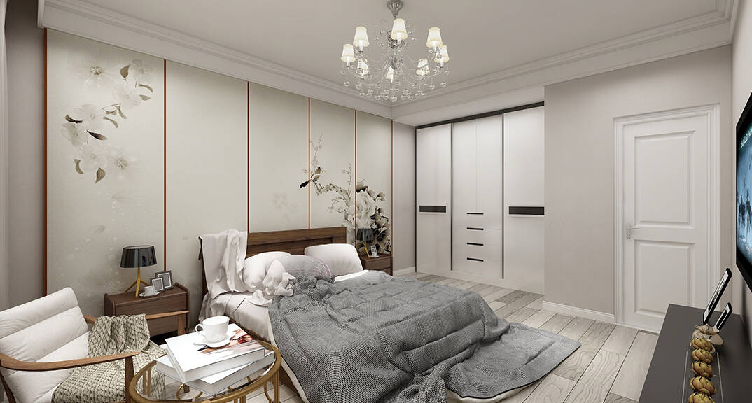王哥莊350m2自建別墅臥室簡約風(fēng)格裝修案例效果圖