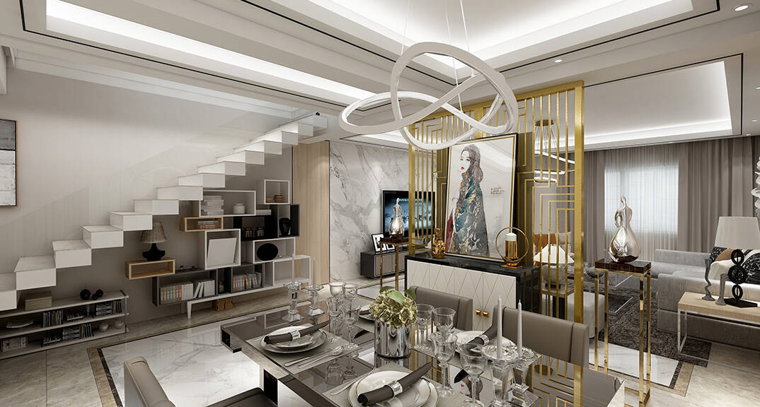 王哥莊350m2自建別墅客餐廳簡約風(fēng)格裝修案例效果圖