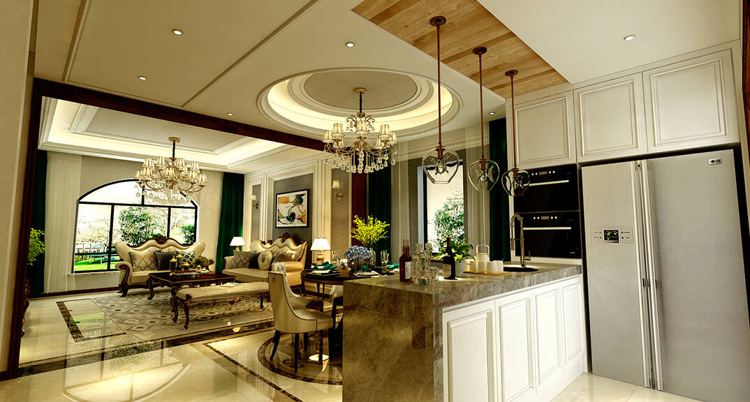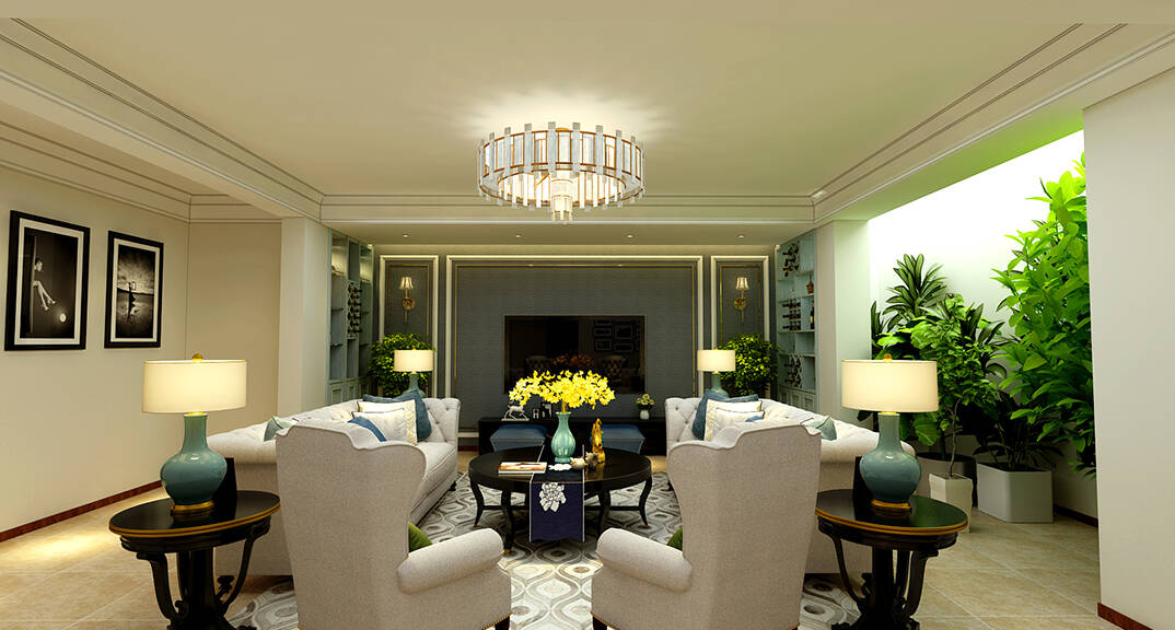 本案客戶對家的生活品質(zhì)和細節(jié)要求非常高,最終確定美式風格。在空間劃分上進行了合理的分配,使整個空間得到了充分的利用。地面材料一樓、負一主要采用暖色瓷磚配合拼花和局部的造型,全屋木制作全部采用美國紅橡,全屋墻面采用的乳膠漆局部配合高檔壁布,整個用料顯得非常高檔大氣。色調(diào)以暖色調(diào)為主,整個空間顯得非常溫馨舒適。
