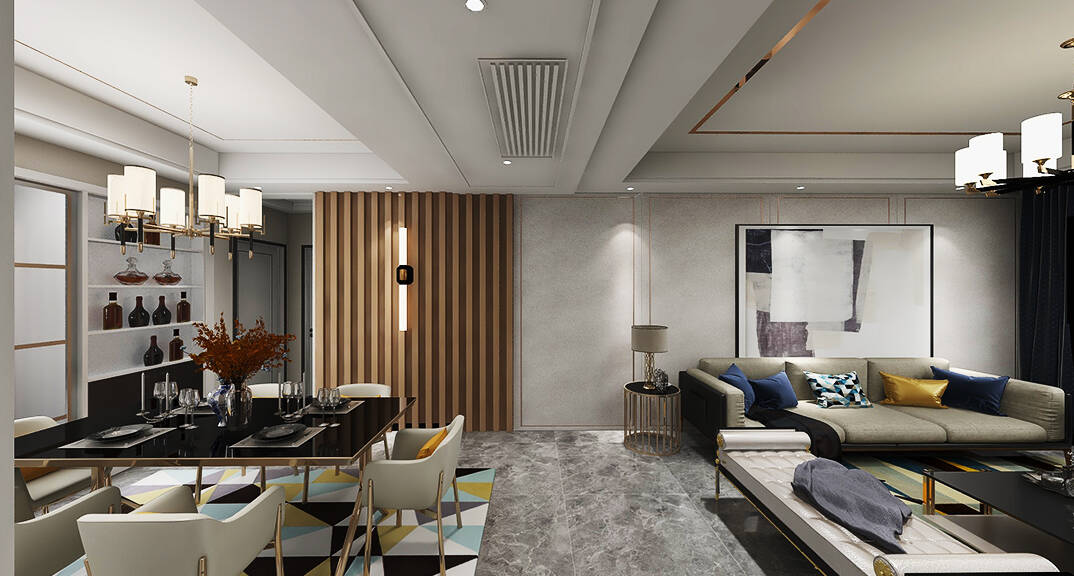 膠州機(jī)場(chǎng)公寓138㎡二室一廳客餐廳輕奢風(fēng)格裝修案例效果圖