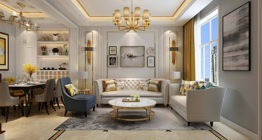 寶龍大沽河藝術村136m2美式風格客廳裝修案例