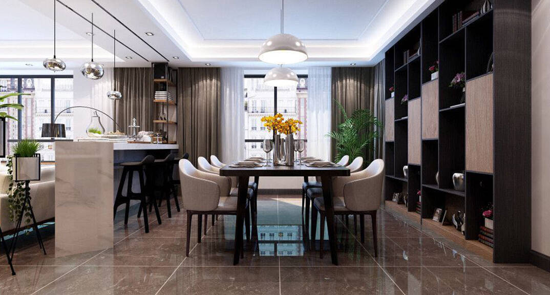 客餐廳以黑、灰、白作為現(xiàn)代空間的三線基調(diào),展現(xiàn)獨一無二的時尚簡練風(fēng)格,帶出內(nèi)斂低調(diào)的現(xiàn)代中式質(zhì)感,以躍層空間的實用性,創(chuàng)造出高低變化的豐富景色,這就是現(xiàn)代港式設(shè)計的精髓。