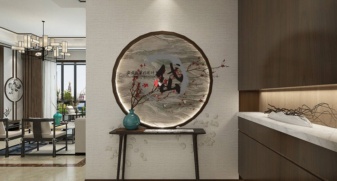 縵沙半島115㎡四室兩廳兩衛(wèi)入戶玄關(guān)現(xiàn)代中式風(fēng)格裝修案例效果圖