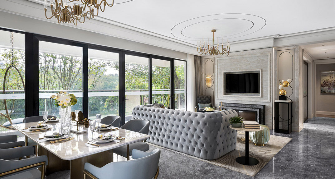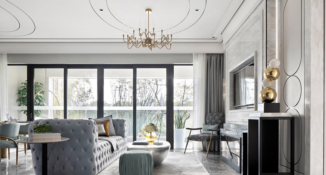 天一仁和瓏樾海142㎡別墅上疊客廳現(xiàn)代輕奢風(fēng)格裝修案例效果圖