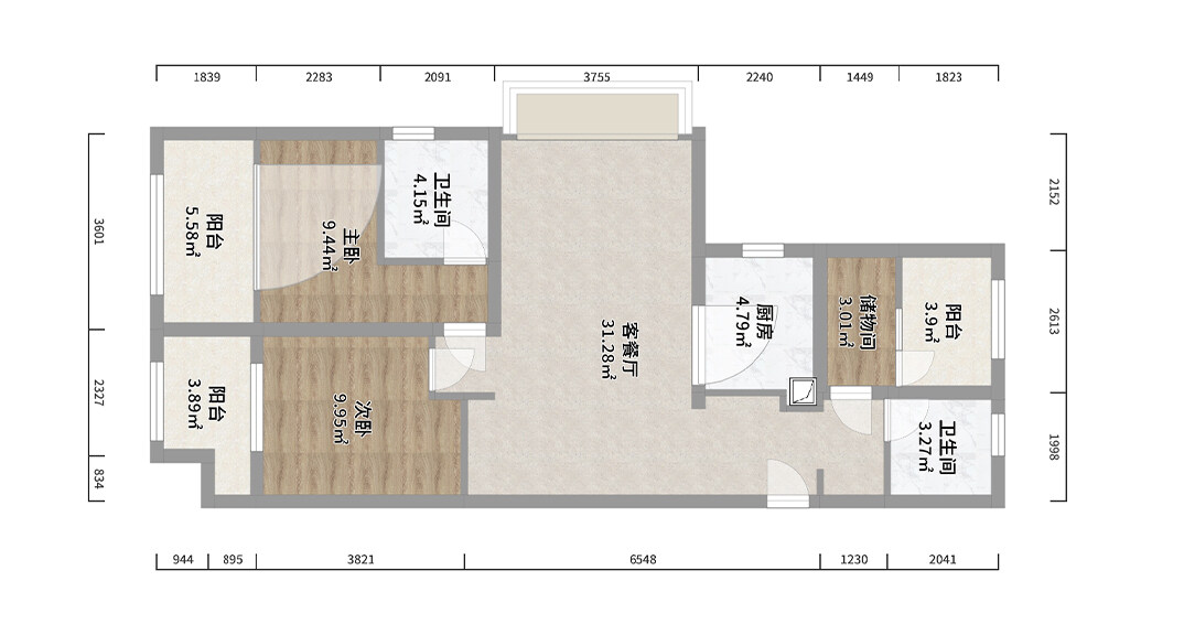桃李芳菲2室1廳1廚2衛(wèi)97㎡戶型