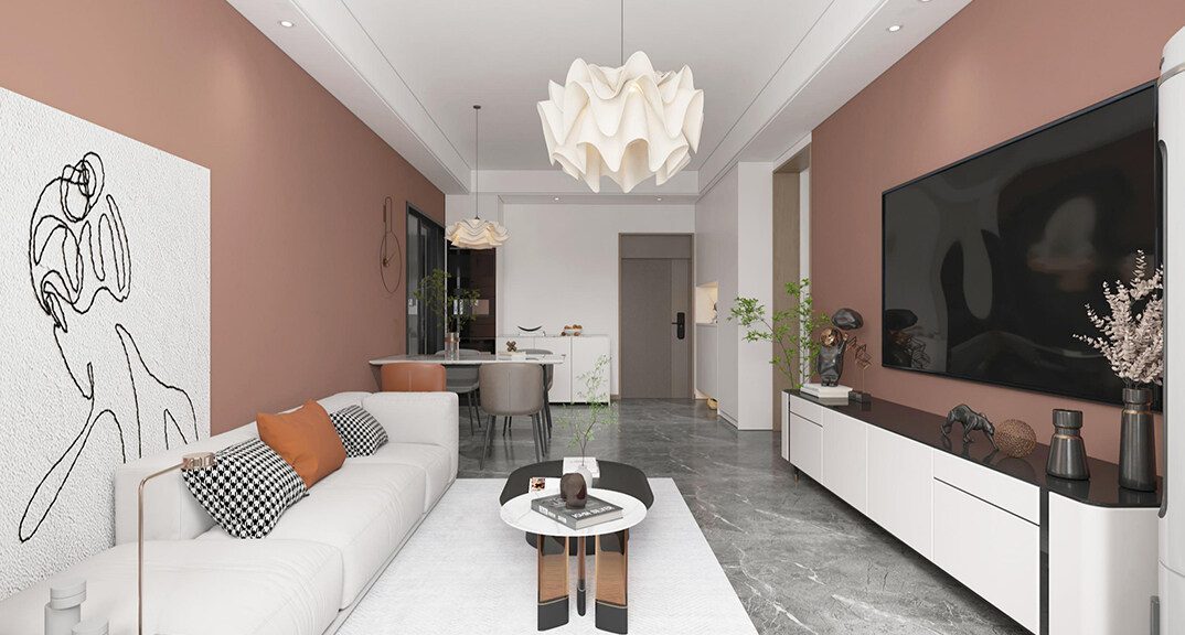 青安·海悅居86㎡二室二廳客廳現(xiàn)代風格裝修案例效果圖