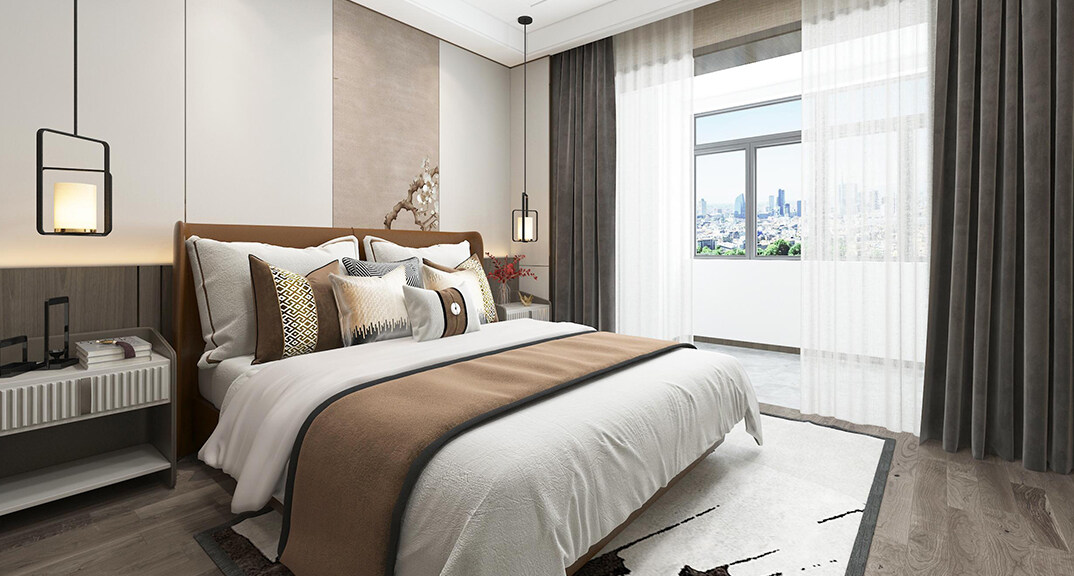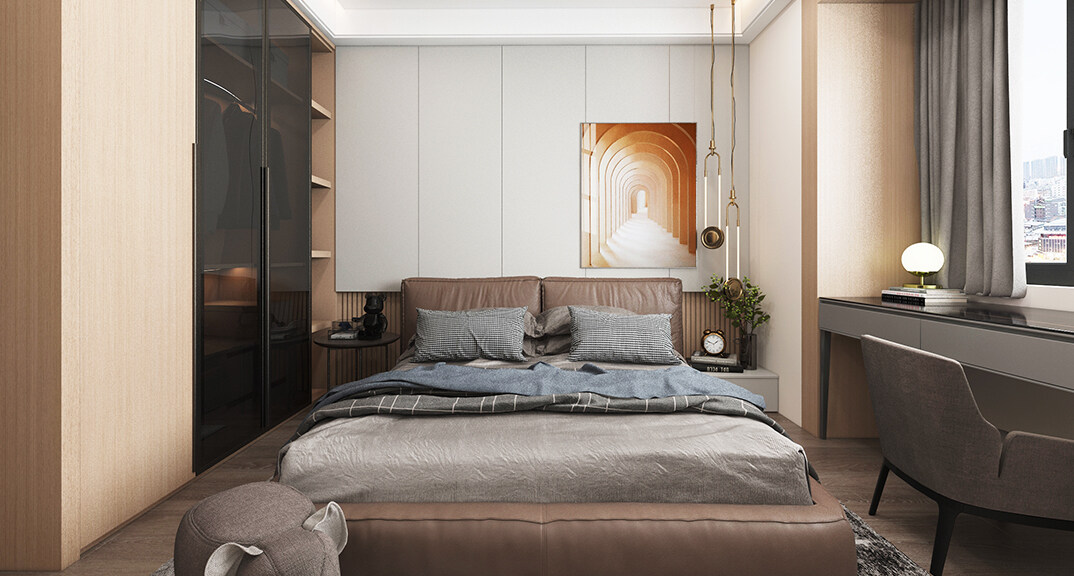 青安·海悅居86㎡二室二廳主臥現(xiàn)代風格裝修案例效果圖