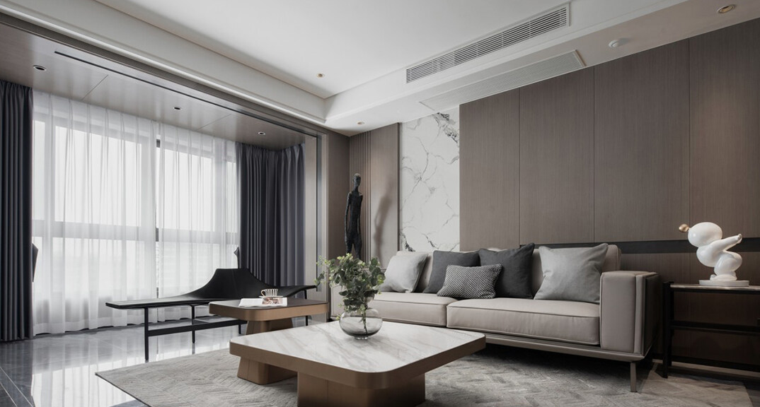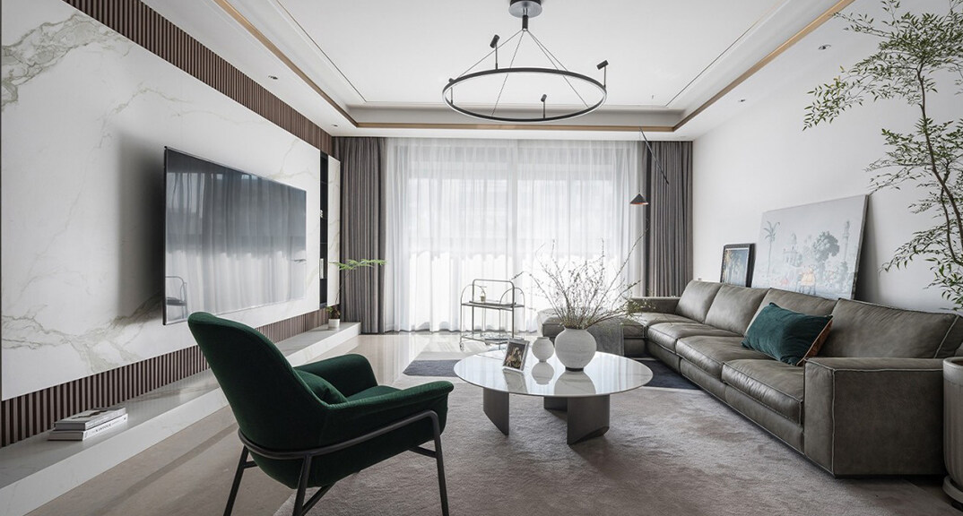 青鐵海譽府143㎡三室二廳客廳簡約風格裝修案例效果圖
