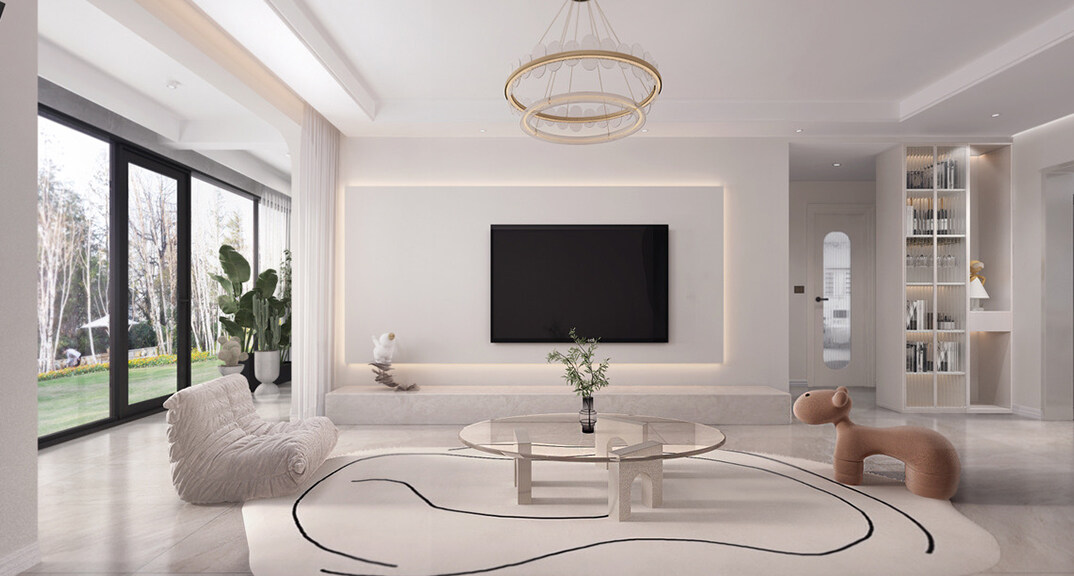青建依山半島103㎡三室兩廳客廳簡(jiǎn)約風(fēng)格裝修案例效果圖