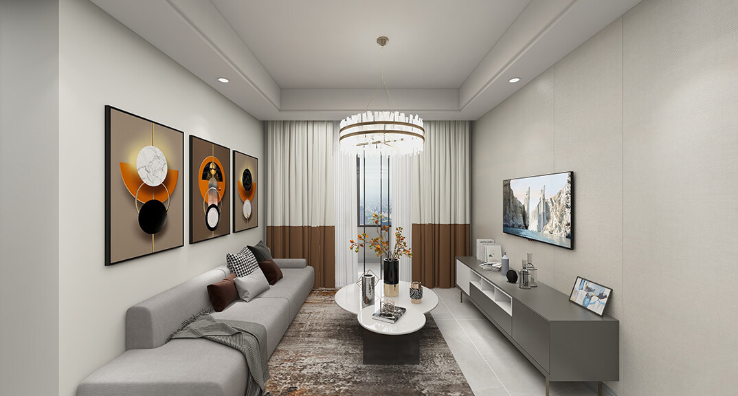 魯商藍(lán)岸公館90㎡二室二廳客廳簡(jiǎn)約風(fēng)格裝修案例效果圖