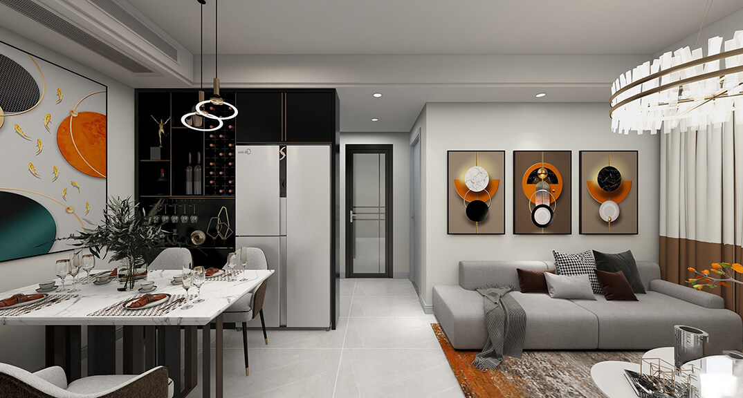 魯商藍(lán)岸公館90㎡二室二廳客餐廳簡(jiǎn)約風(fēng)格裝修案例效果圖