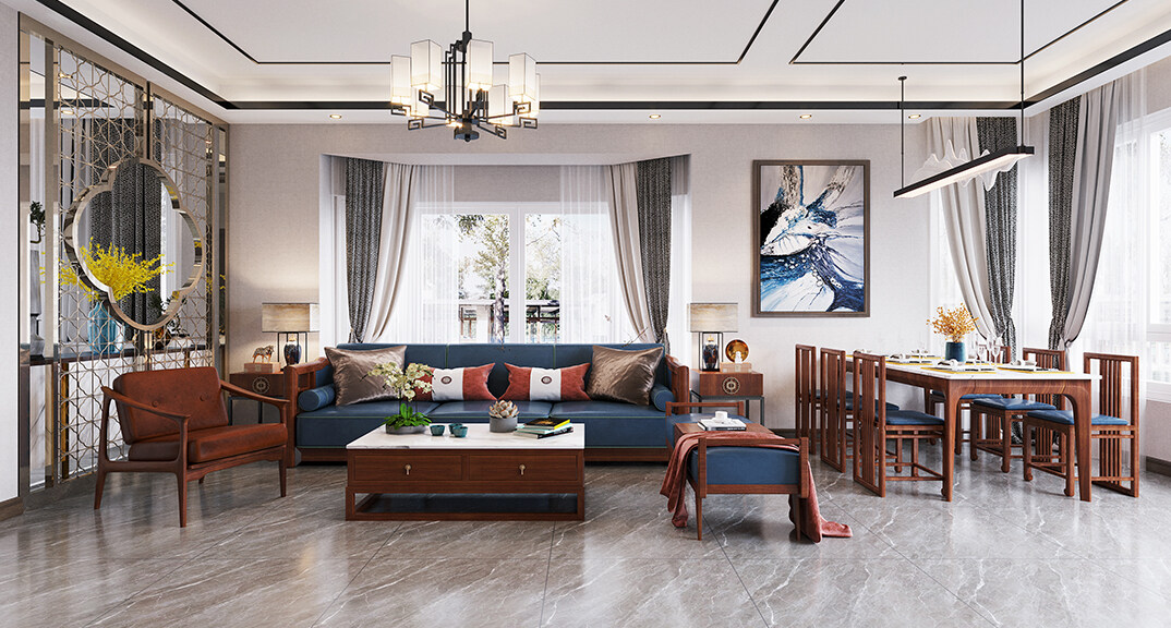 紫荊閣150㎡別墅下疊新中式風格裝修案例效果圖