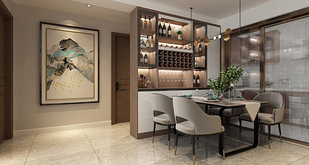 天寧首府128㎡三室兩廳客餐廳新中式風格裝修案例效果圖