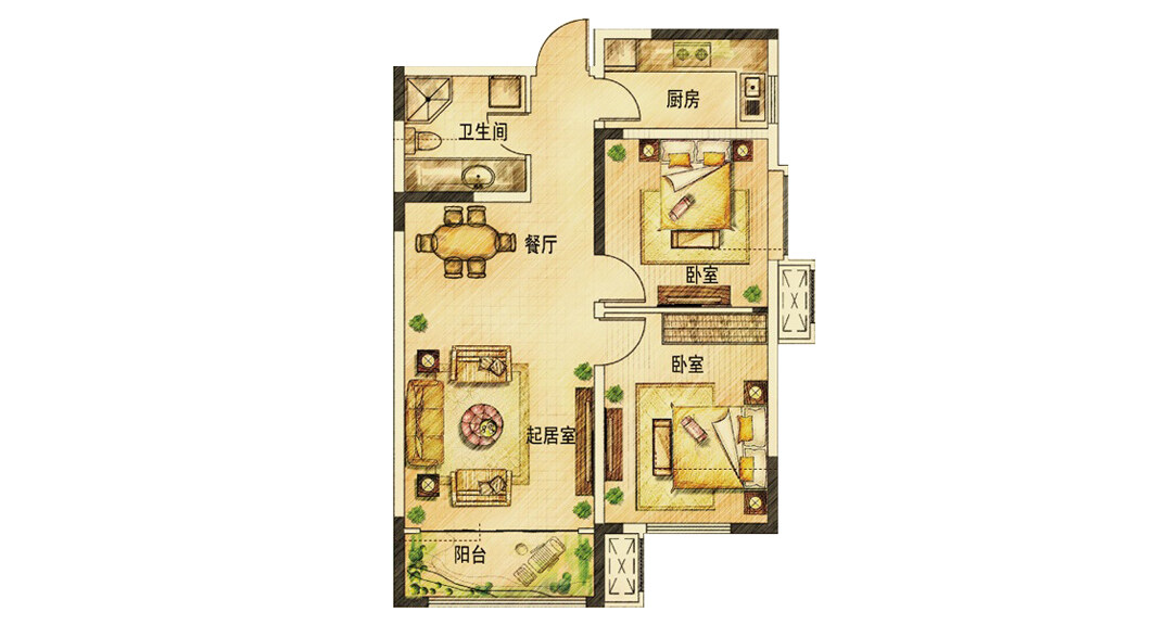 海爾產(chǎn)城創(chuàng)鼎世華府90㎡兩室兩廳戶型平面布局圖