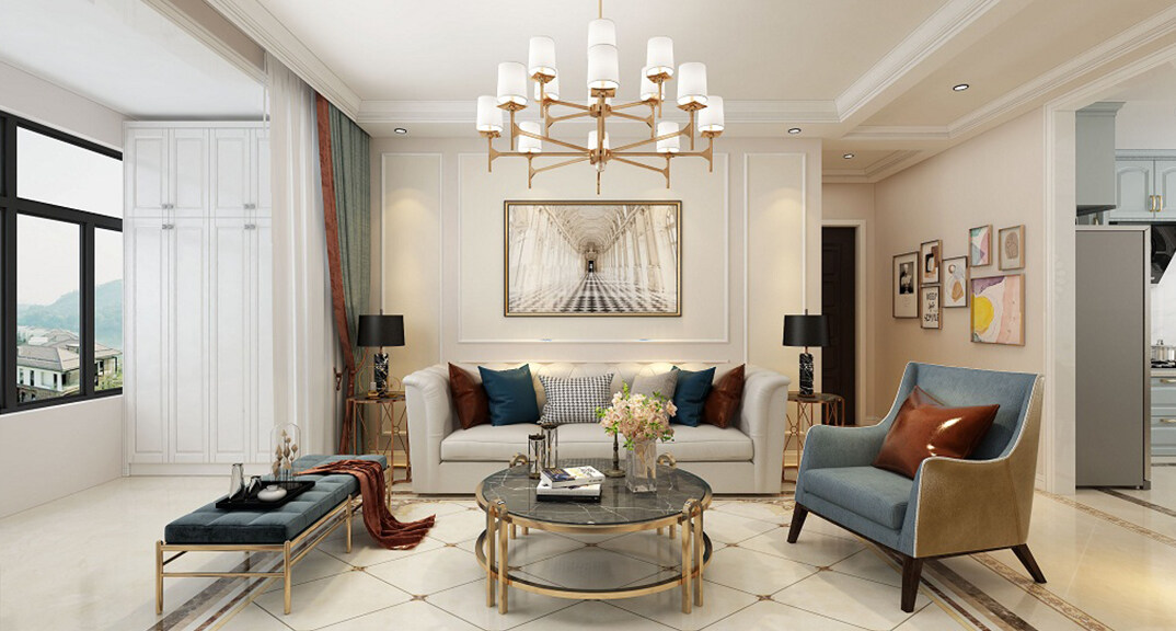 青鋼小鎮(zhèn)105㎡三室兩廳客廳沙發(fā)簡(jiǎn)歐現(xiàn)代風(fēng)格裝修案例效果圖