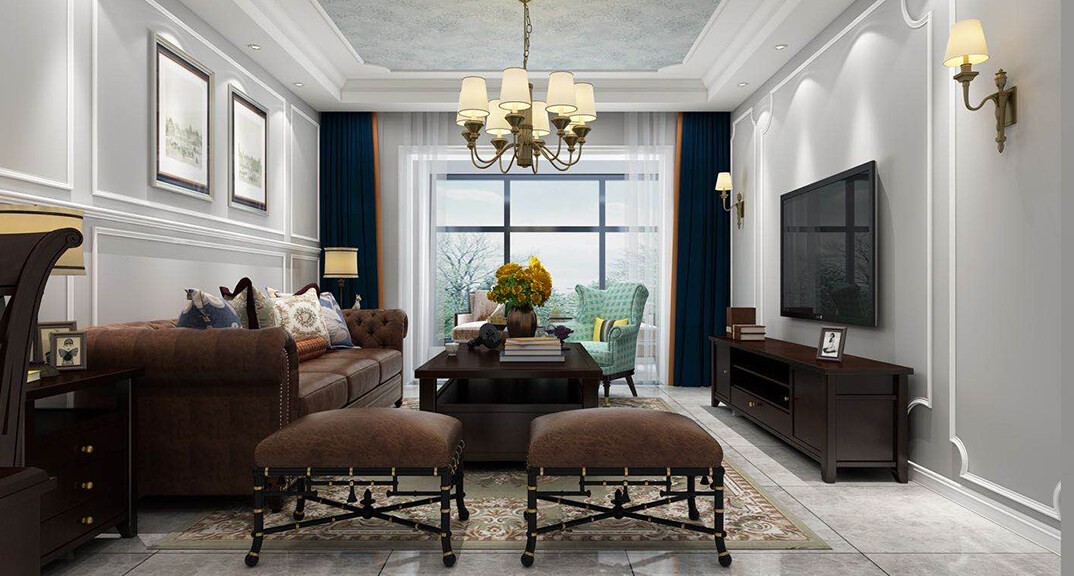 壹號(hào)學(xué)府132㎡三室兩廳客廳美式風(fēng)格裝修案例效果圖