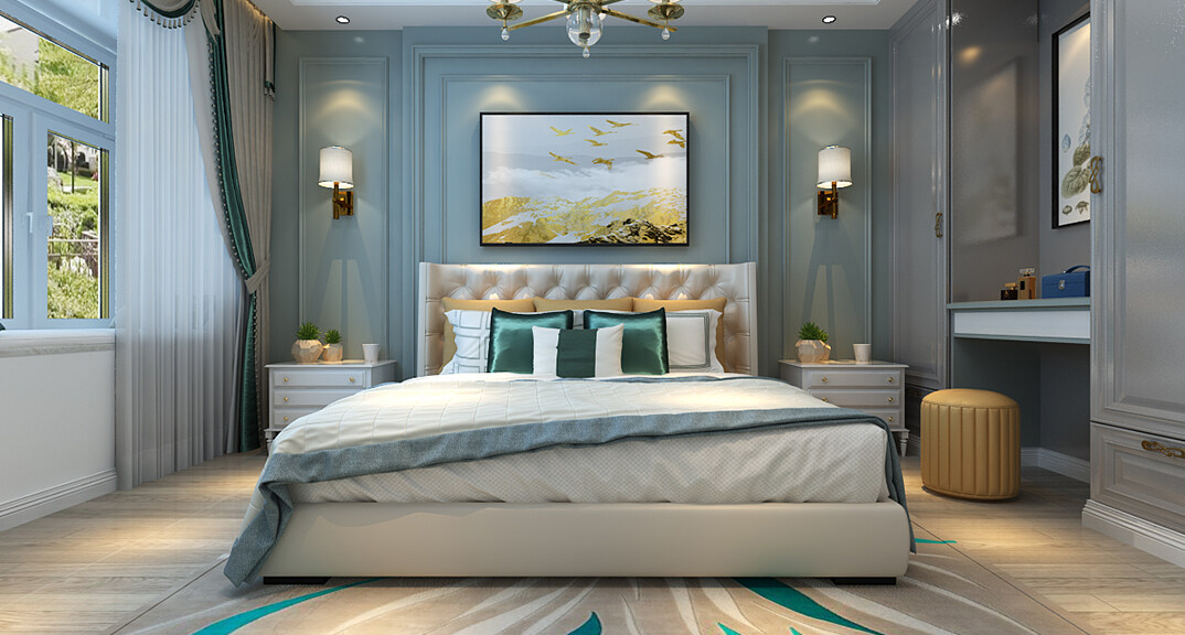 壹號(hào)學(xué)府132㎡三室兩廳主臥美式風(fēng)格裝修案例效果圖