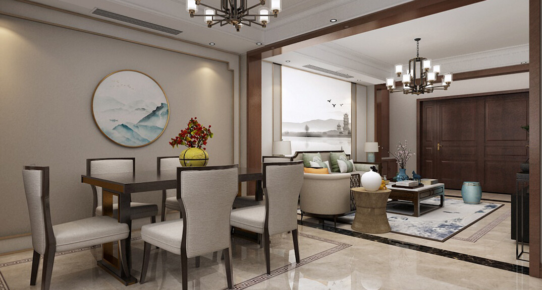 楓林小鎮(zhèn)230㎡別墅客餐廳新中式風(fēng)格裝修案例效果圖