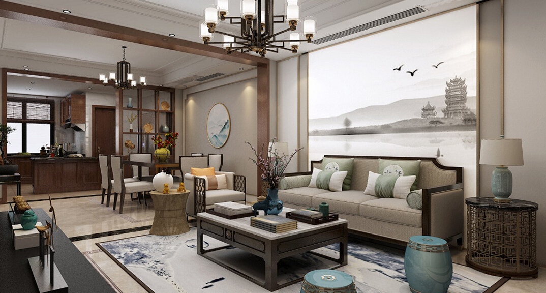 楓林小鎮(zhèn)230㎡別墅客廳新中式風(fēng)格裝修案例效果圖