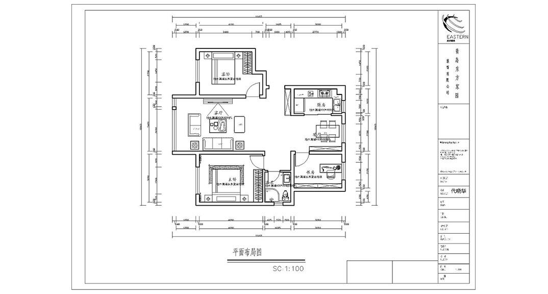 青鋼小鎮(zhèn)100㎡三室兩廳戶型平面布局圖