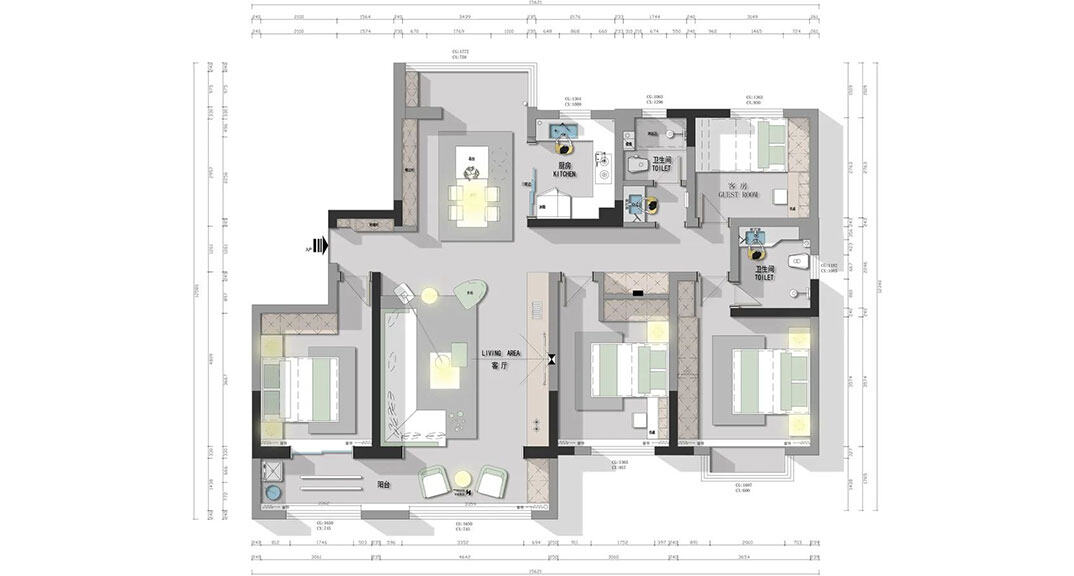 金域華庭176㎡四室兩廳書房現(xiàn)代極簡風格裝修案例效果圖