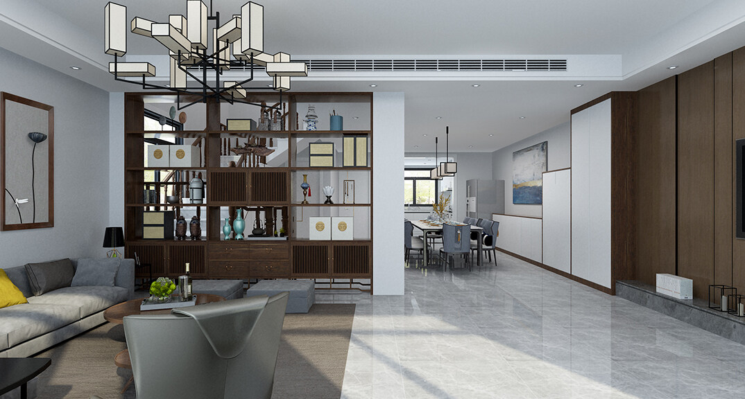 白鷺灣230㎡H戶型客餐廳新中式風格裝修案例效果圖
