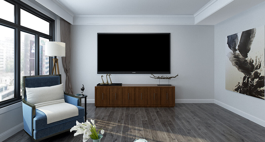 白鷺灣230㎡H戶型客廳電視新中式風格裝修案例效果圖