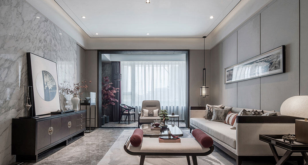依云四季138㎡四室兩廳客廳新中式風(fēng)格戶(hù)型研發(fā)案例效果圖