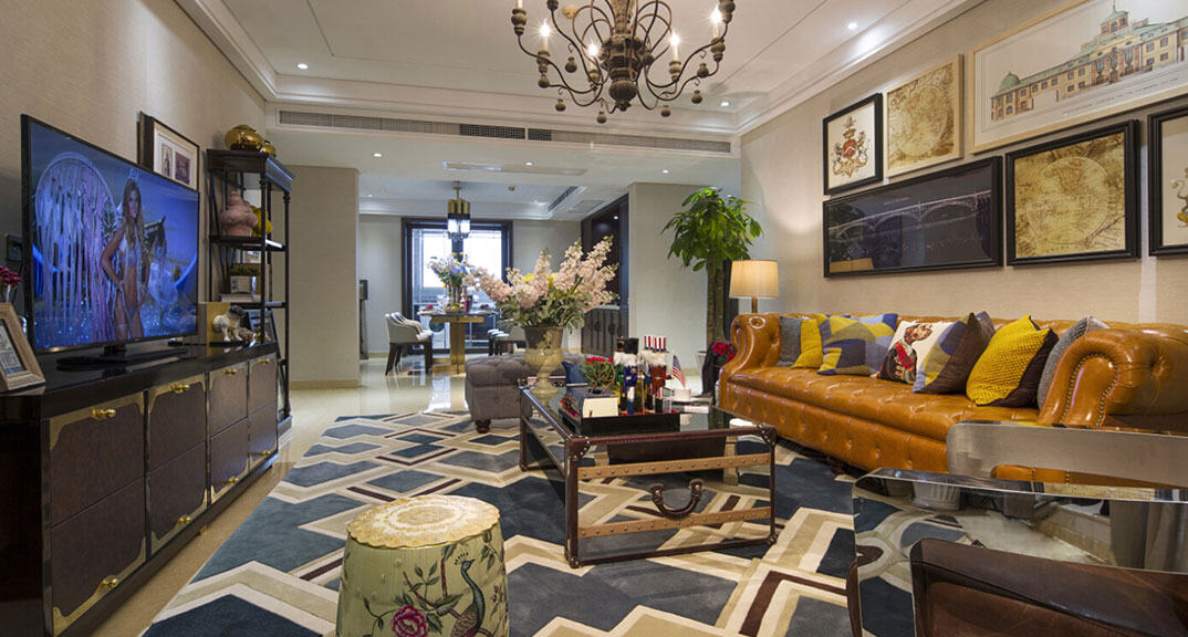 依云四季118㎡三室兩廳客廳美式風(fēng)格研發(fā)案例效果圖