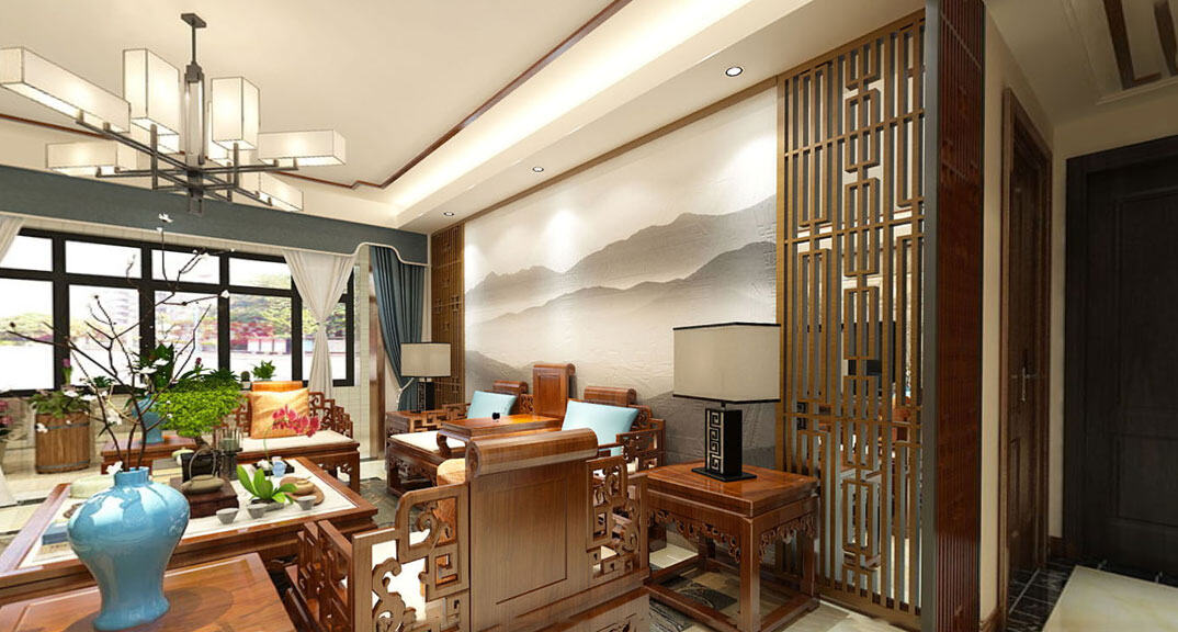 市直三區(qū)160㎡三室兩廳客廳中式風(fēng)格裝修案例效果圖