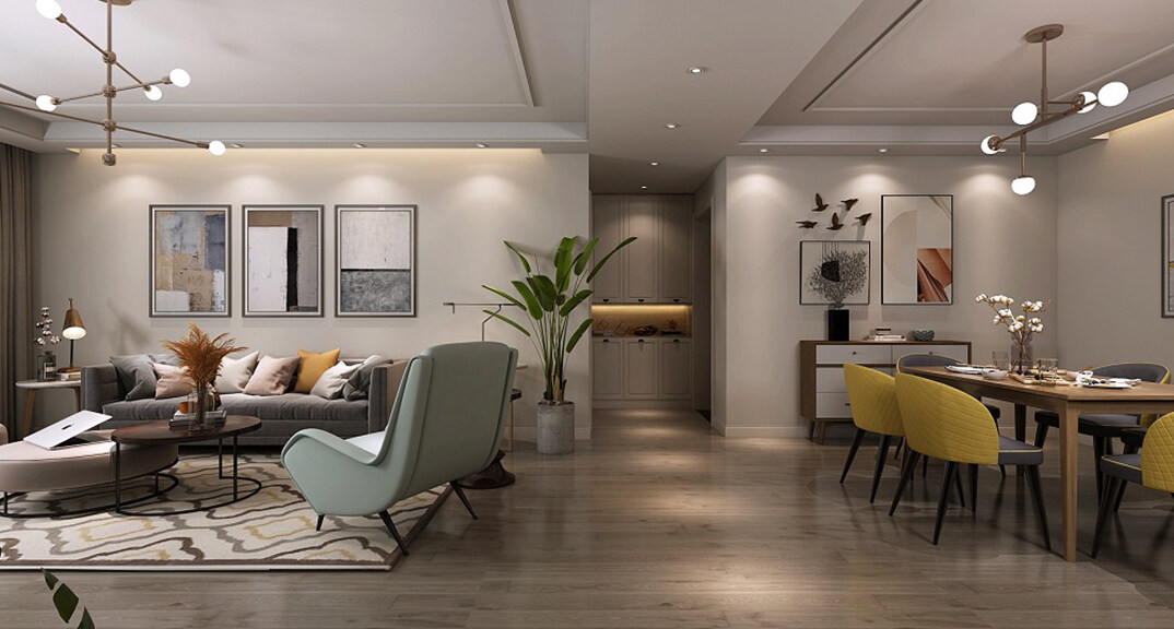 海信半山蘭亭116㎡三室兩廳客餐廳現(xiàn)代簡約風(fēng)格裝修案例效果圖