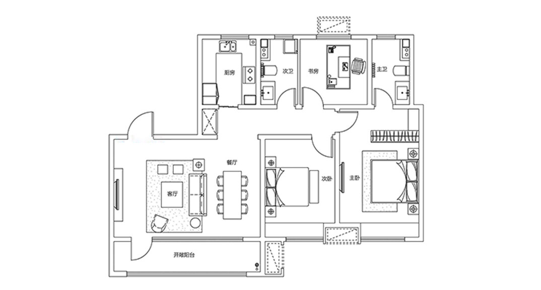 青特星城142㎡三室兩廳戶型平面布局圖