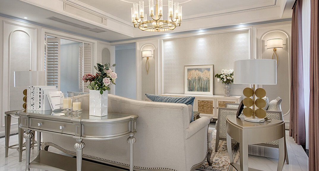 青特星城119㎡三室兩廳客廳簡(jiǎn)歐風(fēng)格裝修案例效果圖