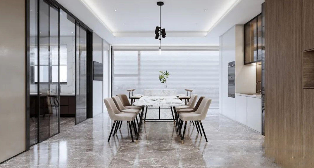 日鋼綠城300㎡別墅餐廳現(xiàn)代輕奢風(fēng)格裝修案例效果圖