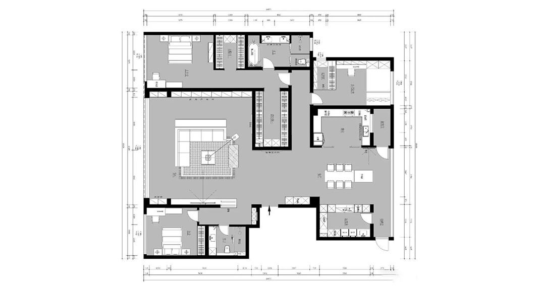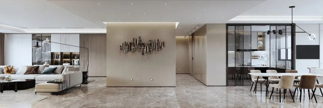 日鋼綠城300㎡別墅客餐廳現(xiàn)代輕奢風(fēng)格裝修案例效果圖
