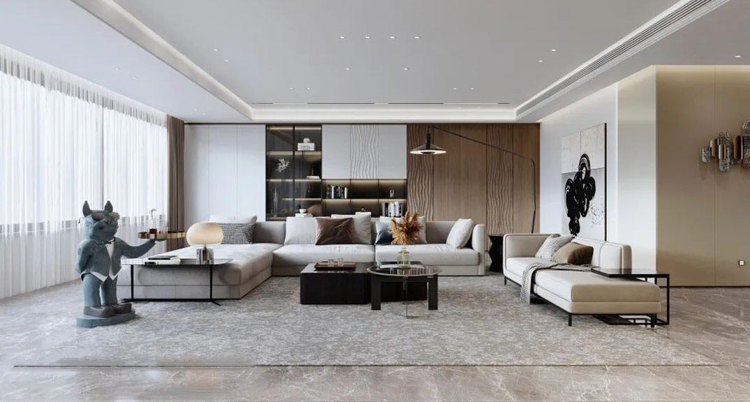 日鋼綠城300㎡別墅客廳沙發(fā)現(xiàn)代輕奢風(fēng)格裝修案例效果圖