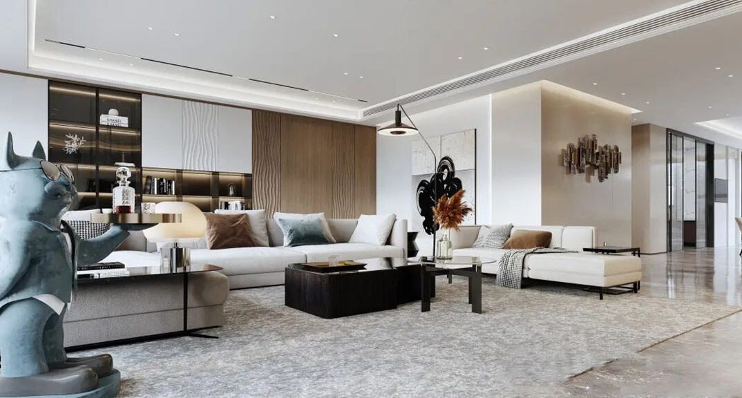 日鋼綠城300㎡別墅客廳現(xiàn)代輕奢風(fēng)格裝修案例效果圖