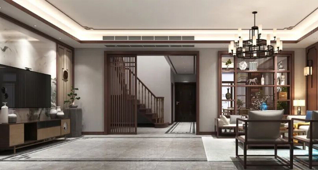 北海錦華352㎡別墅客廳沙發(fā)新中式風(fēng)格裝修案例效果圖