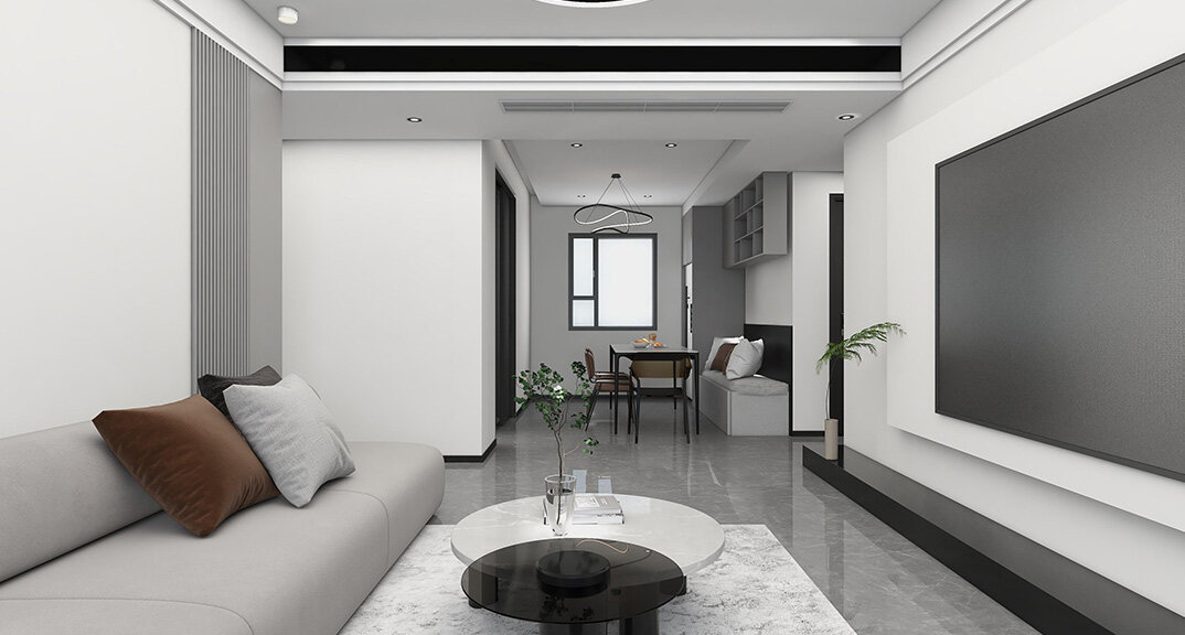 下崖社區(qū)112㎡三室兩廳客廳沙發(fā)極簡(jiǎn)風(fēng)格裝修案例效果圖