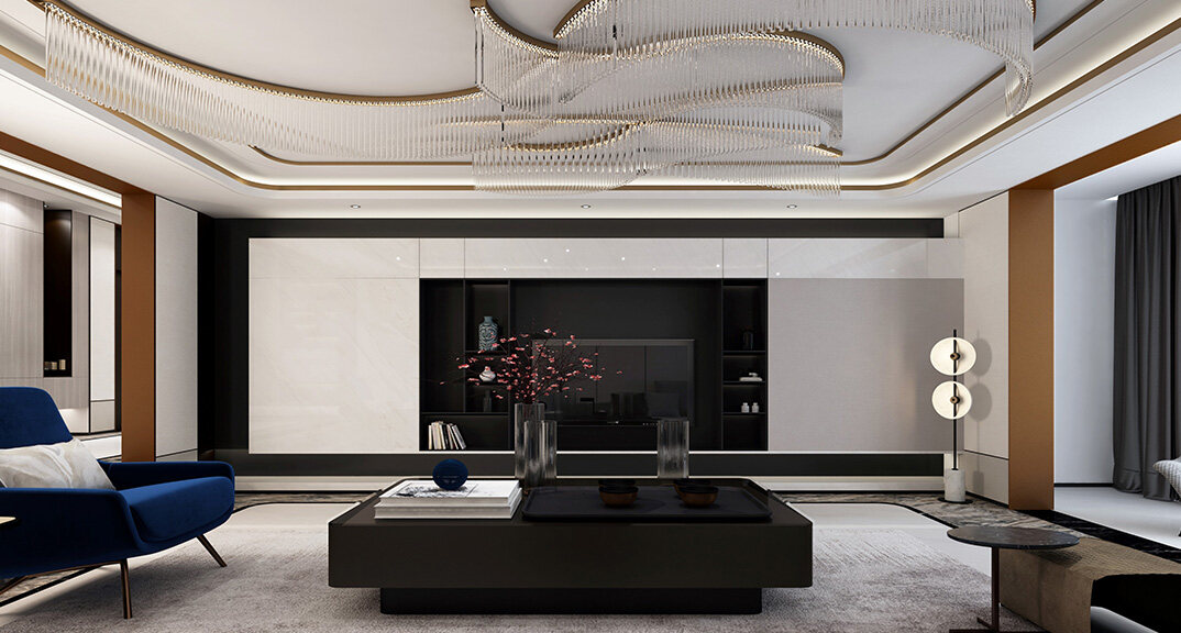 縵沙半島660㎡別墅客廳電視現(xiàn)代風(fēng)格裝修案例效果圖