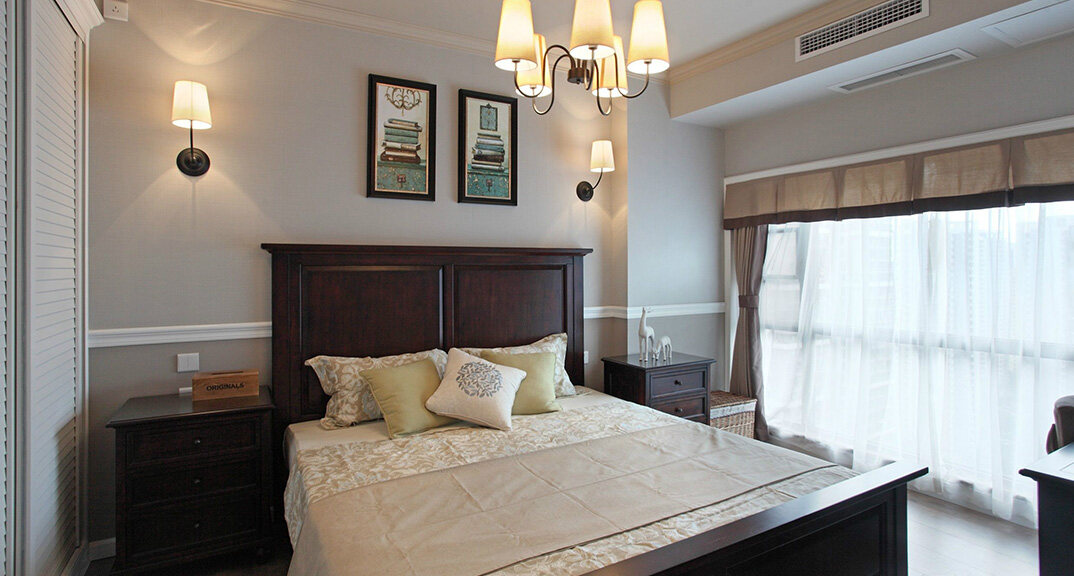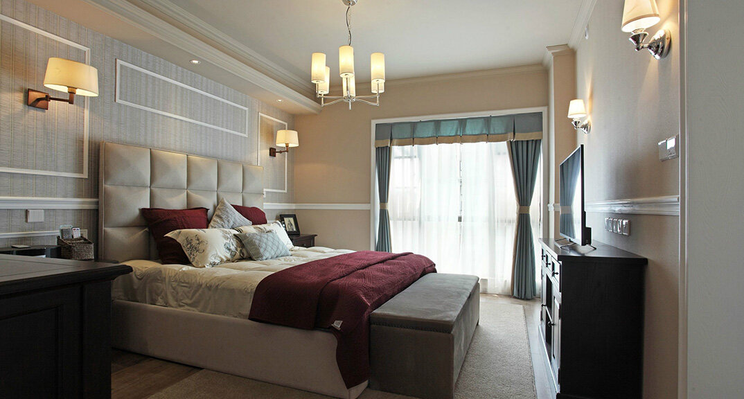 檀府300㎡別墅主臥現(xiàn)代美式風格裝修案例效果圖
