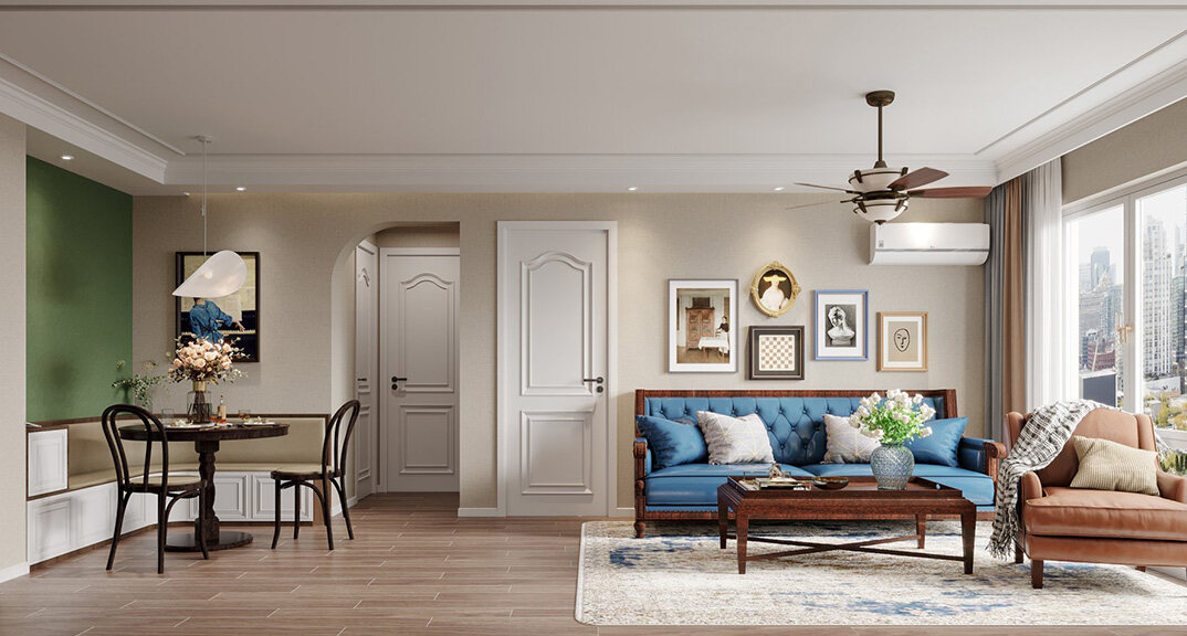 海洋地質(zhì)所120㎡三室兩廳美式風格裝修vr全景