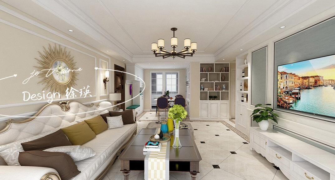 午山96㎡兩室兩廳客廳簡歐風格裝修案例效果圖