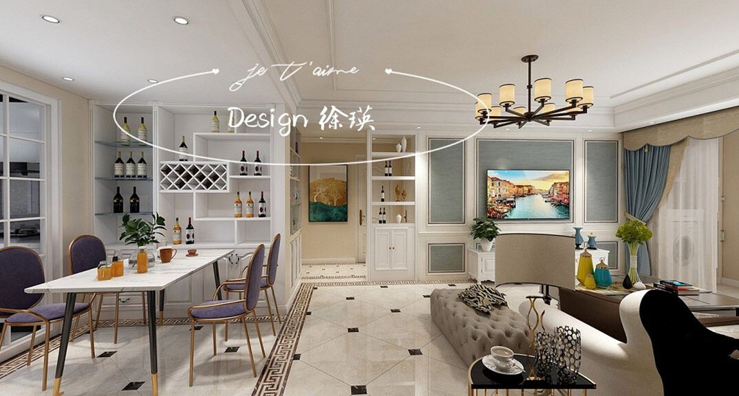 午山96㎡兩室兩廳客餐廳簡歐風格裝修案例效果圖